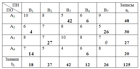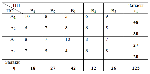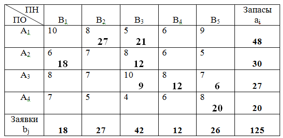 Рассмотрим сначала решение закрытой транспортной задачи, т.е. когда сумма всех заявок ровна сумме всех запасов .