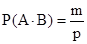 Чтобы интуитивно это определение стало понятным, рассмотрим, например, следующую ситуацию. Пусть в коробке лежат k бумажек, помеченных буквой А ,r бумажек, помеченных буквой В , m бумажек, помеченных буквами А·В и n пустых бумажек. Всего имеется р = k + r + n + m бумажек. И пусть из коробки по очереди вытаскиваются одна бумажка за другой, причем после каждого вытаскивания отмечается тип вытащенной бумажки и она снова кладется в коробку. Результаты очень большого числа подобных испытаний записываются. Условная вероятность Р(А/В) означает, что событие А рассматривается только в связи с реализацией события В. В данном примере это означает, что необходимо подсчитать число вытащенных бумажек с буквами А·В и буквой В и первое число разделить на сумму первого и второго чисел. При достаточно большом числе испытаний это отношение будет стремиться к числу