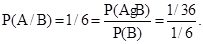 Пример 1.1. Пусть дважды бросается рсается игральная кость и требуется определить вероятность P(A/B) выпадения в сумме 10 очков, если в первом бросании выпало 4.
