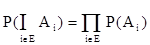 События могут быть попарно независимыми, но оказаться зависим-ыми в совокупности. В связи с этим вводится также понятие взаимной независимости: события А1,..., Аn называются взаимно независимыми, если для всякого подмножества Е индексов 1,2,...,n выполняется равенство