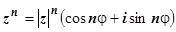 . С помощью этой формулы легко вычислять высокие степени комплексных чисел и выводить формулы для синусов и косинусов кратных углов: