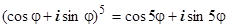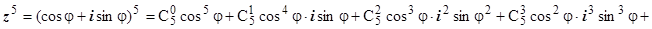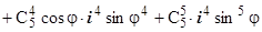 , поэтому, приравнивая действительные и мнимые части этих двух представлений пятой степени числа