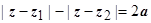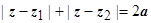- эллипс, построенный на z1 точках и z2, рассматриваемых как фокусы (большая полуось равна 2а, малая -