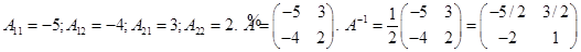 Замечания. 1. Полезно запомнить, что обратная матрица второго порядка получается из исходной следующим образом: элементы главной диагонали меняются местами, у элементов второй диагонали изменяется знак. Полученная матрица делится на определитель.