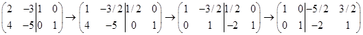 и левая часть элементарными преобразованиями приводится к единичной. При этом матрица Е преобразуется в обратную {б/д}. Последний пример: