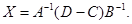 Использование обратных матриц позволяет решать простые матричные уравнения относительно квадратных матриц. Рассмотрим пример одной из таких задач. Решить уравнение AXB + C = D, где