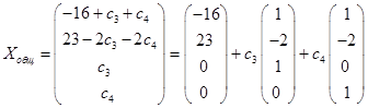 Последняя формула, вообще говоря, дает общее решение данной системы при произвольных значениях с3 и с4 . Более удобной является векторная форма записи: