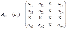 Матрицу, состоящую из m строк и n столбцов, будем обозначать