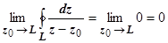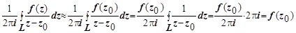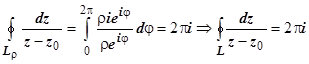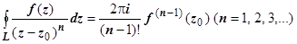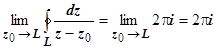 - аналитическая функция. Естественно, точка z0 должна лежать внутри контура L (если она лежит вне контура, подынтегральная функция аналитична, и интеграл равен нулю).