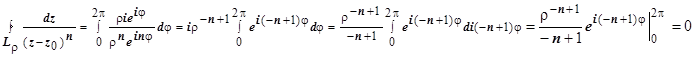 лежит вне контура L. В этом случае подынтегральная функция аналитична в замкнутой области, ограниченной контуром, и интеграл равен нулю при любых целых n.