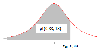 Pr(tр>0,88)=1–pt(0.88, 18) =0,195,