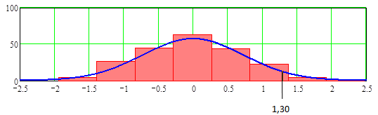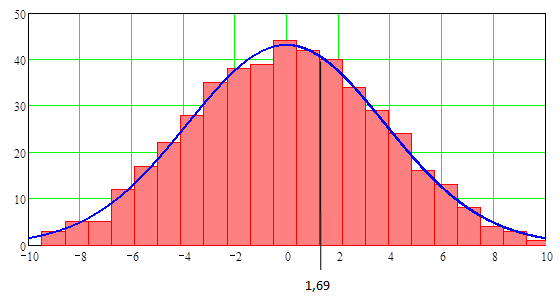 Рис.10.1.7. Нормированное нормальное распределение и гистограмма экспериментального распределения.