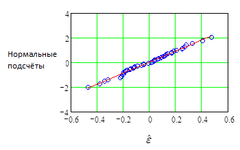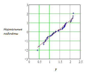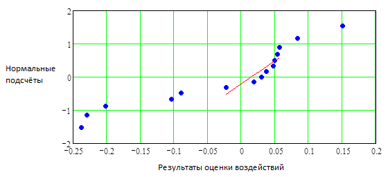 Если выборка результатов оценки имеет нормальное распределение, то точки графика кумулятивных вероятностей будут выстраиваться приблизительно в прямую линию. График кумулятивных вероятностей распределения элементов вектора