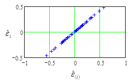 показан на Рис.11.3.5. Точки на графике следуют вдоль прямой примерно с единичным наклоном. На нём нет удалённых от этой линии точек, указывающих на резко выделяющиеся значения.