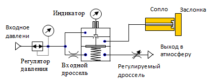 Рис.12.3.1. Схема пневматического преобразователя линейных перемещений