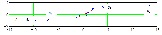 | 7. Давление на входе в преобразователь, х7 | β7–β16–β25–β34 | b7'=–5,958 |