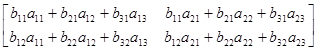 Для того чтобы произведение АВ было определено необходимо чтобы число столбцов матрицы A было равно числу строк матрицы B. Тогда (ij)-й элемент произведения С=АВ находится в виде