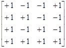 Матрицы Адамара используются при анализе экспериментов, выполняемых по двухуровневым планам 2п. При этом элементами первого столбца таких матриц должны быть числа +1. Новые матрицы Адамара получаются с использованием произведения Кронекера известных матриц Адамара. Так, если взять матрицу А2=