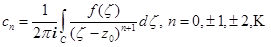 Используя следствия интегральной формулы Коши (§13), коэффициенты ряда Лорана могут быть представлены в интегральной форме. Для этого проведем две окружности С1 и С2 с центрами и т. z0 , радиусы которых удовлетворяют условию