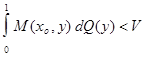 Теорема 2. Пусть – бесконечная антагонистическая игра с непрерывной функцией выигрышей М(х, y) на единичном квадрате и ценой игры V. Тогда, если Q(y) – оптимальная стратегия игрока 2 и для некоторого xo