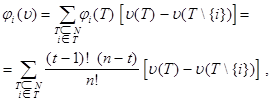 Можно доказать, что компоненты вектора Шепли в явном виде запишутся следующим образом