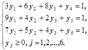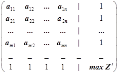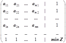 . Максимизация цены игры v эквивалентна минимизации величины 1/v, поэтому задача может быть сформулирована следующим образом: определить значения переменных