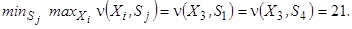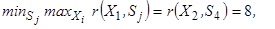 Так как в этом случае v(Xi,Sj) отражают затраты, то воспользуемся минимаксным критерием. Для каждого допустимого решения X, найдем максимальные затраты: