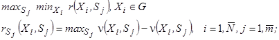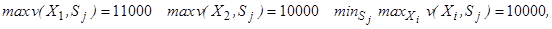 Аналогично, если v(Xi,Sj) - выигрыш, то по максиминному критерию выбирают решение