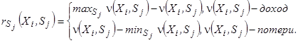 Для устранения отмеченного недостатка минимаксного (максиминного) критерия вместо величины v(Xi,Sj), характеризующей потери (выигрыши) при принятии решения Xi в реализации возможного состояния Sj, введем величину: