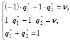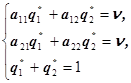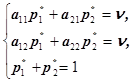 (это соответствует 1-му столбцу платежной матрицы Р), равен цене игры v: