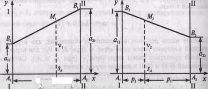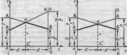 . На перпендикулярных осях 1—1 и II—II откладываем выигрыши при стратегиях