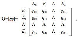 Интенсивности переходов qij, i,j=0,n, можно задать в виде квадратной матрицы Q размерности (n+1)´(n+1):