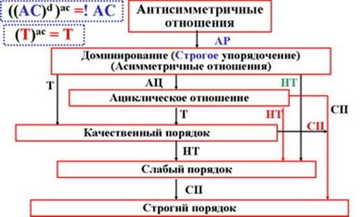 4. Асимметричная часть квазипорядка является транзитивным и антирефлексивным отношением = качественный порядок.