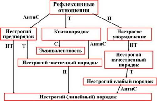 Отношением нестрогого частичного порядка (4) называется отношение, имеющее свойства рефлексивности, антисимметричности и транзитивности.