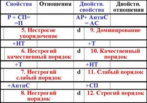 4. Двойственное отношение обладает свойствами асимметричности и транзитивности поэтому является отношением качественного порядка.