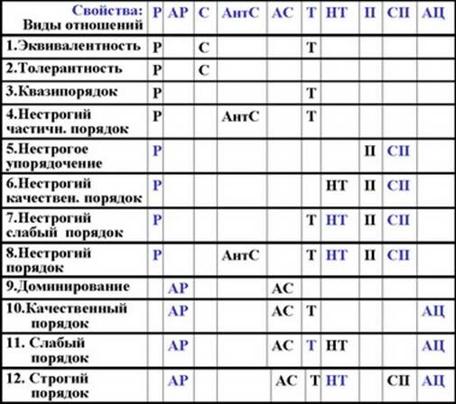 Отношение нестрогого упорядочения можно представить как результат объединения некоторых отношений толерантности и доминирования.