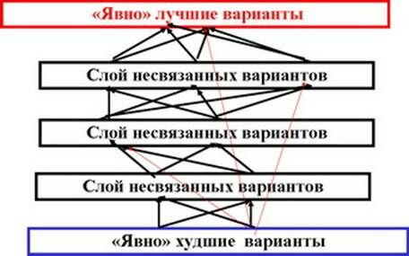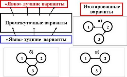 3. С помощью этого пересечения можно выделить группы эквивалентных между собой вариантов, тогда между выделенными группами может быть установлено отношение нестрогого частичного порядка, порожденное исходным отношением.
