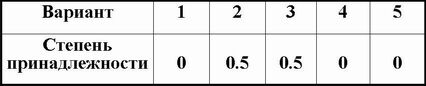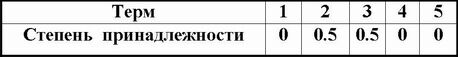 Тогда результат фаззификации первой лингвистической переменной (критерия) представляется следующей таблицей принадлежности: