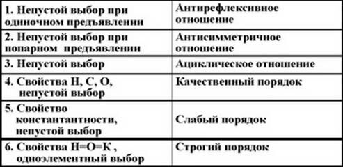 Одноэлементный выбор, свойства Н=О=К <=> Строгий порядок