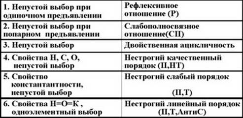 1. Предпосылки анализа свойств нормальных функций выбора в зависимости от свойств бинарных отношений