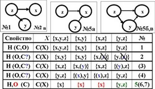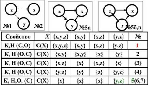Возьмем произвольные 3 варианта, которые обозначим как x, y, z . Для предъявлений, составленных из этих вариантов, рассмотрим таблицы всех различных функций выбора, удовлетворяющих свойствам Н,С,О,К.