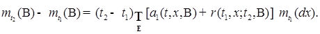 - вероятность того, что у РСМПШ, начинающегося в момент времени s из точки x, в течение интервала времени (s,t) произойдет ровно n скачков, причем в результате n-ого скачка он попадет в множество B с вероятностью