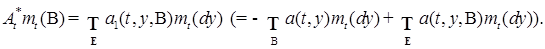 – это условная вероятность попадания в множество B в результате скачка РСМПШ из состояния x. Соотношение (25) позволяет представить переходную вероятность