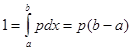 Пример. Пусть плотность случайной величины X постоянна на отрезке [a,b] p(x) = p и равна нулю вне этого отрезка. Такое распределение называется равномерным на отрезке [a,b]. Из условия нормировки для плотности вероятности следует