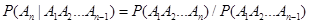 Теорема умножения вероятностей. Пусть событие A=A1A2…An (т. е. A – пересечение событий A1, A2,…, An) и P(A)>0. Тогда справедливо равенство: P(A) = P(A1) P(A2|A1) P(A3|A1A2) … P(An|A1A2,,,An-1), называемое формулой умножения вероятностей.