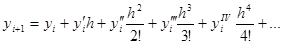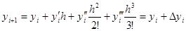 Если в этой формуле ограничиться двумя первыми слагаемыми, то получим формулу метода Эйлера. Метод Рунге – Кутта учитывает четыре первых члена разложения.
