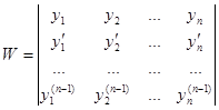 линейно зависимы, то составленный для них определитель Вронского равен нулю.