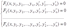 где х- независимая переменная, у1, у2,…,уn – искомые функции, называется системой дифференциальных уравнений первого порядка.