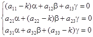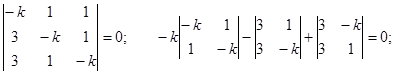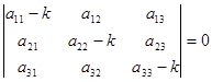 В результате вычисления определителя получаем уравнение третьей степени относительно k. Это уравнение называется характеристическим уравнением и имеет три корня k1, k2, k3. Каждому из этих корней соответствует ненулевое решение системы (2):