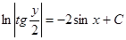 Получили общий интеграл данного дифференциального уравнения. Если из этого соотношения выразить искомую функцию у, то получим общее решение.
